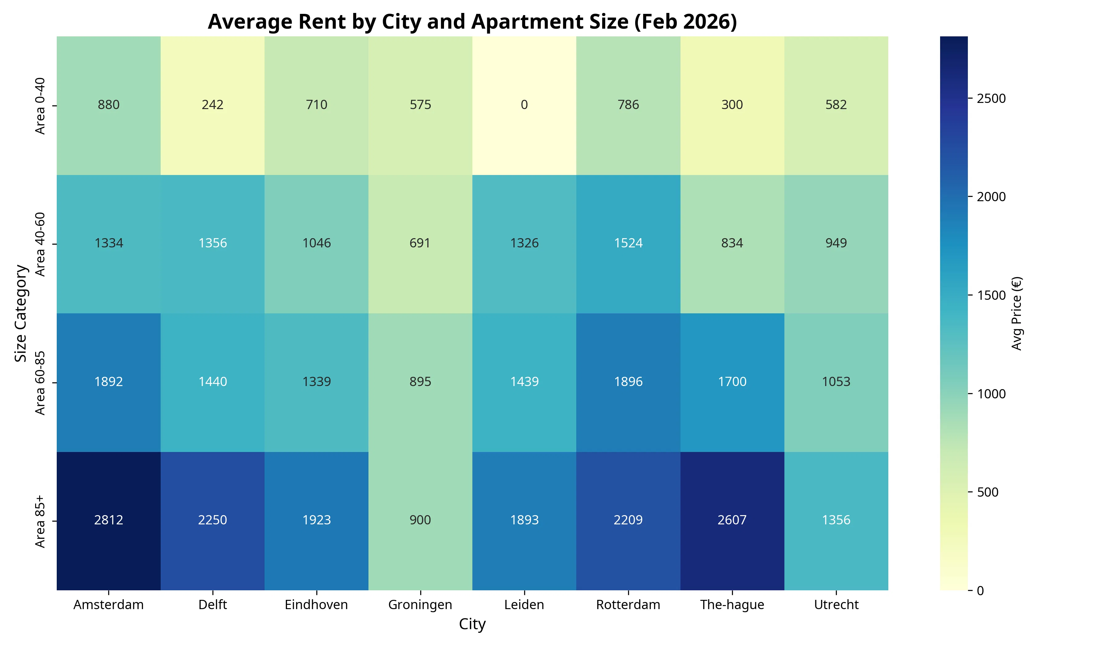 - The Mid-Size Value: The 40-60 m² segment in Utrecht and Eindhoven offers the best balance of price and space, with averages hovering around €1,000 - €1,400.