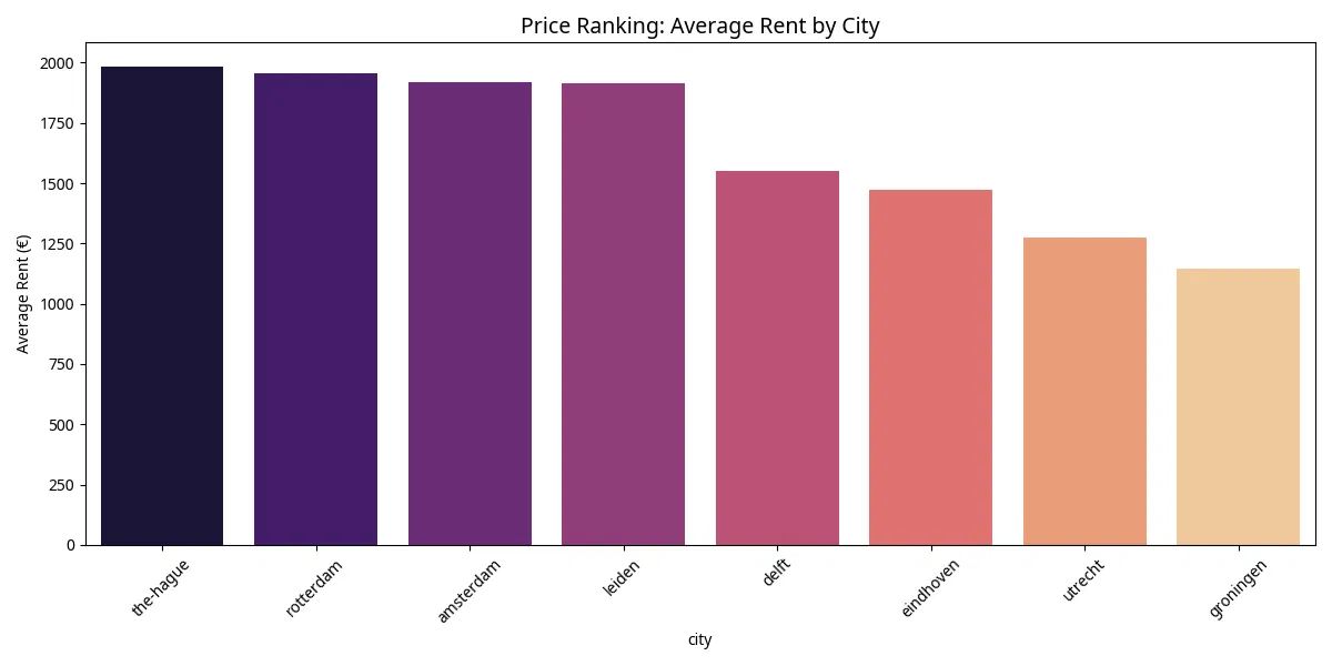 - The Hague: 18 listings | Avg Price: €1950 (Low Sample Size < 5 for exact count, average derived from available data)
